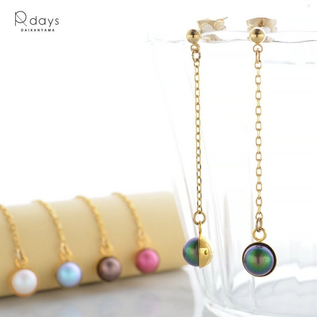 凝った色合いのスワロフスキーパールが半分だけ見え隠れする小ぶりのロングピアス/イヤリング。ふとした折にカラーパールとゴールドが入れ替わるような、はっとさせる効果も。全5色。 ■サイズ ・全長:4.7cm ■重さ(1ペア) ・約1.7g ■素材 ・ガラスパール ・金具・チェーン:真鍮・丹銅にゴールドカラーメッキ ・樹脂ノンホールピアス(イヤリング):ポリカーボネイト樹脂 ■お手入れ ・ご使用後はやわらかい布などで、汗、汚れを拭いてください。 ・銀磨き剤などは、クリスタルやメッキを傷める場合がありますので、ご使用にならないでください。 ■備考 ・モニターの発色の具合によって実際のものと色が異なって見える場合があります。 ・製品の仕様は改良のために変更になる場合がございます。 ・ご使用による不具合の発生、チェーンや部品等の破損につきまして、お気軽にお問い合わせください。 不具合の発生部分をお写真に撮りメール添付でお問い合わせいただければ、修理のお見積りをさせていただきます。詳しくは会社概要をご覧ください。 ・金属・チェーン部分はメッキ加工を施してあります。メッキはご使用により次第に摩耗してまいります。 メッキの摩耗については、お修理の範囲外とさせていただきますので、あらかじめご了承ください。 ・すべてがアレルギーフリー対応の素材ではございませんので、着用の仕方、体質・体調によっては、かゆみ、かぶれ等の症状が出る場合がございます。 異常を感じられた際にはただちに使用を中止し、専門医を受診されますようお願いいたします。 【アレルギーフリー パーツ交換】ご希望のお客様へ ■オプション「アレルギーフリーパーツ(A)交換希望」より「交換を希望する」をお選びください。 ・樹脂ピアスパーツは、直接肌に触れる部分はすべて樹脂になっておりますが、直接肌に触れない部分は金属を使用しているものもございます。そのため、体質やご使用状況によってアレルギーが出る場合がございます。ご理解のうえご購入ください。 ・樹脂パーツは、金属パーツに比べて強い力での引っぱりや、過度の曲げ・広げに弱く、経年劣化が早くなっております。不具合が生じた場合はお修理も承りますのでお気軽にお問い合わせください。