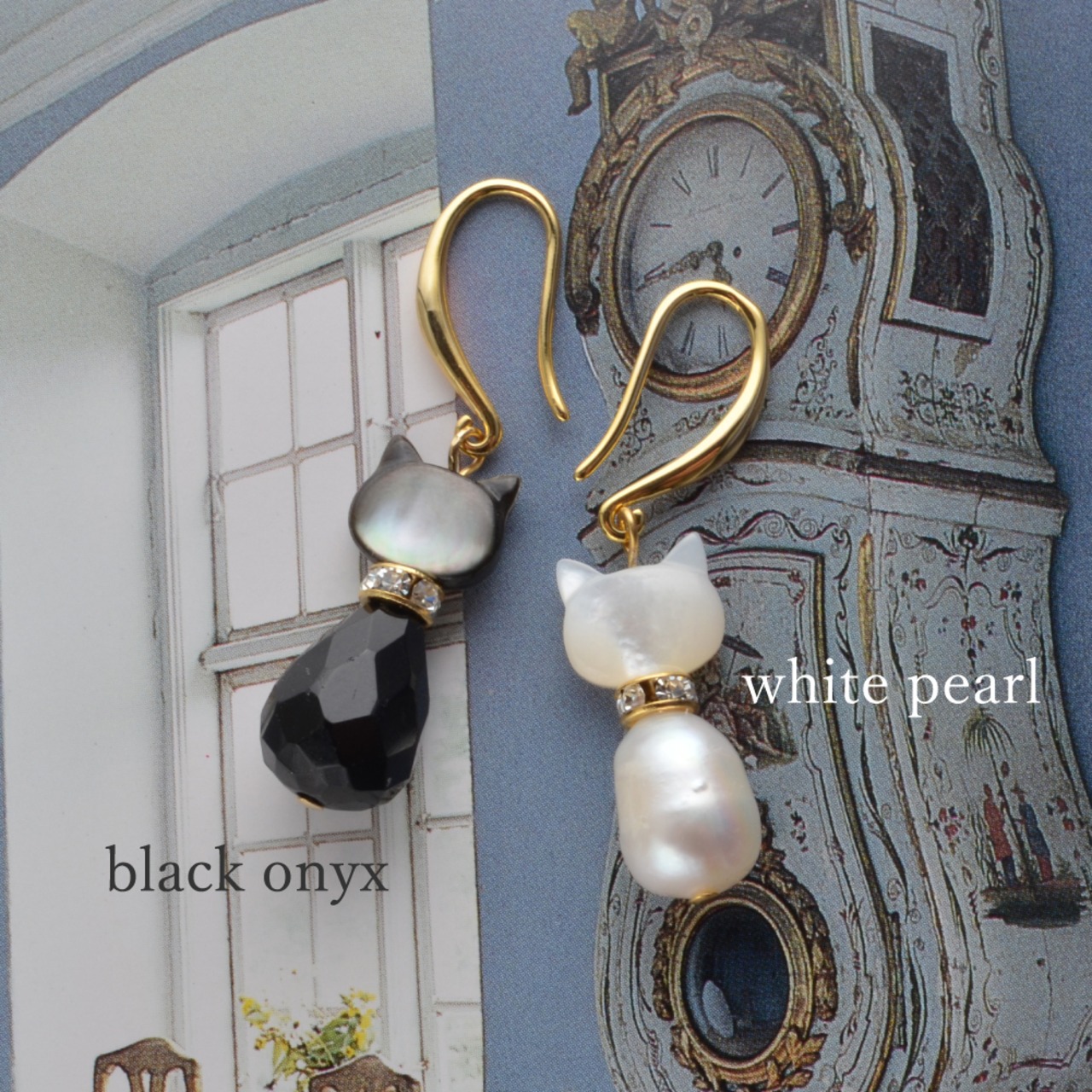 ・マザーオブパール、オニキス、淡水パール ・金具類:真鍮にゴールドカラーメッキ ・樹脂ピアス金具・イヤリング金具(ノンホールピアス):ポリカーボネイト樹脂