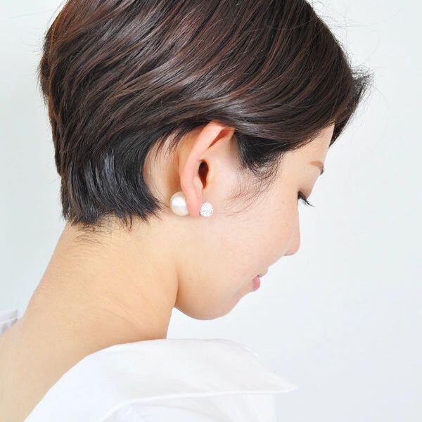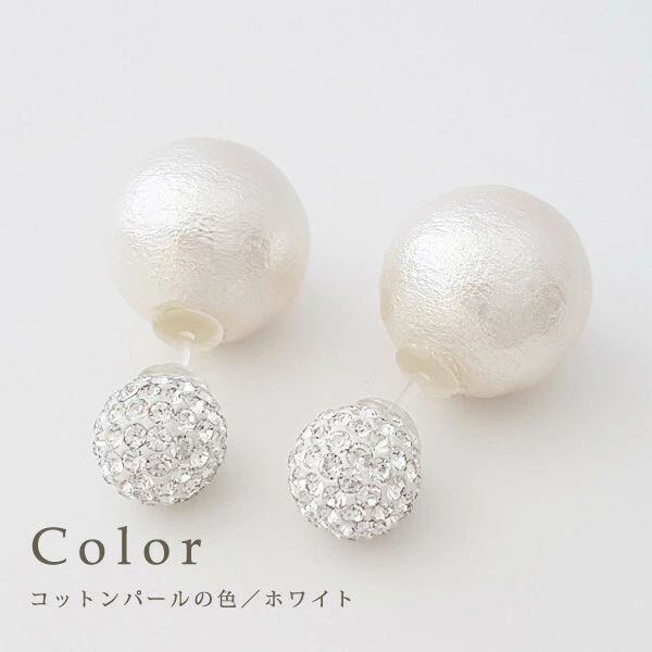 8mmパヴェボールダブルピアスの樹脂ポスト版。金属アレルギー対応。