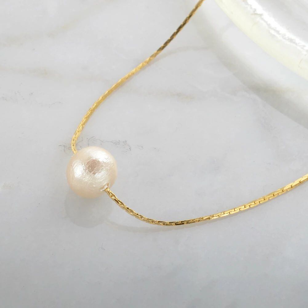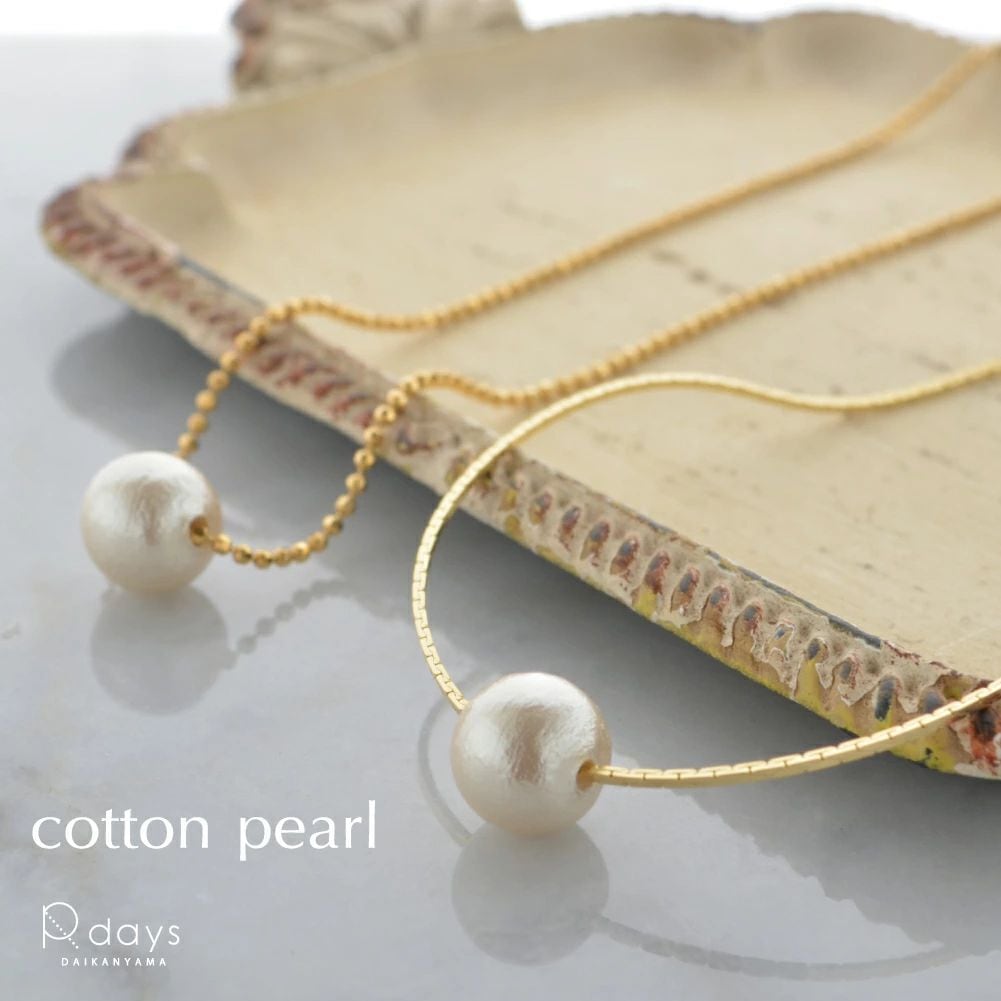 フォーマルシーンからカジュアルまで出番の多い、一粒パールのネックレス。パール3色、チェーン2種から選べる一粒のコットンパールネックレス。ピアスとセットで!