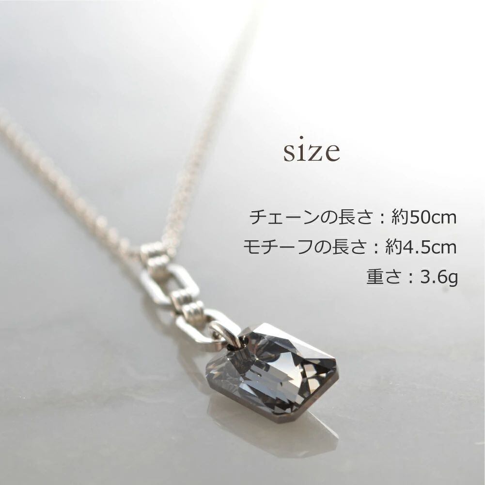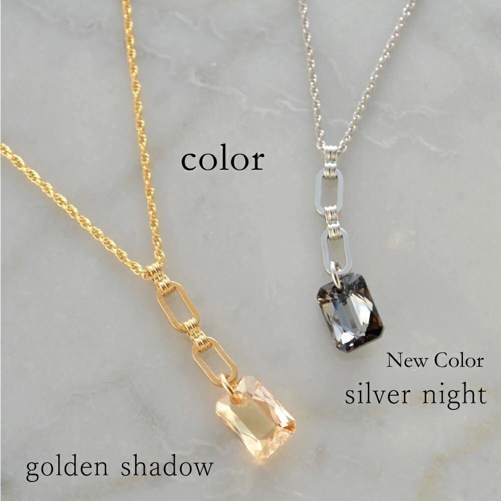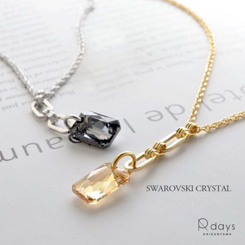 きりっとソリッドな輝きの、42面カットを施したスワロフスキークリスタルを配したネックレス。2色展開。デザインチェーンのセミロングネックレス。