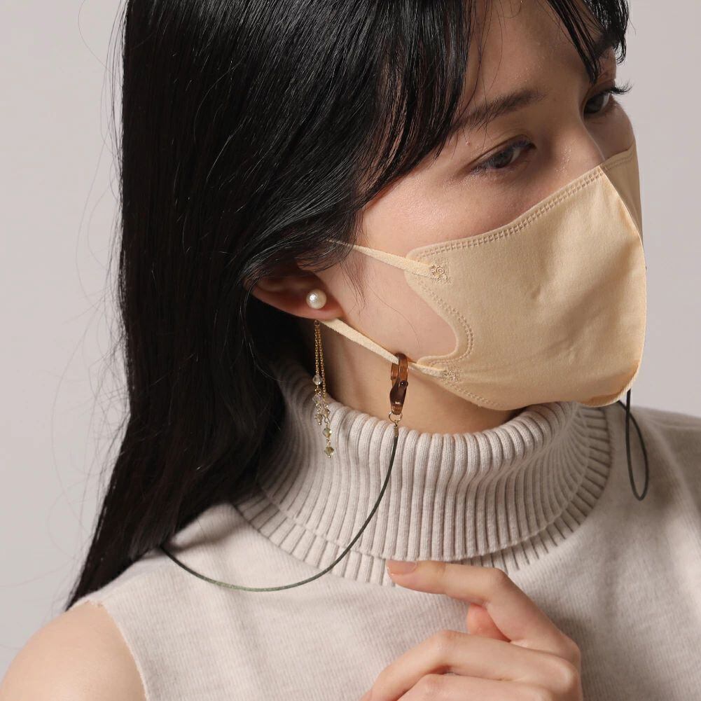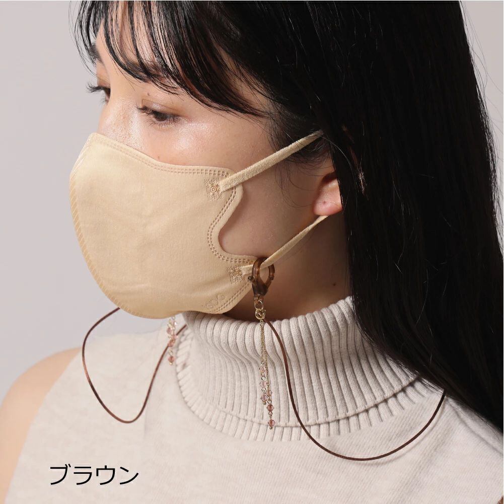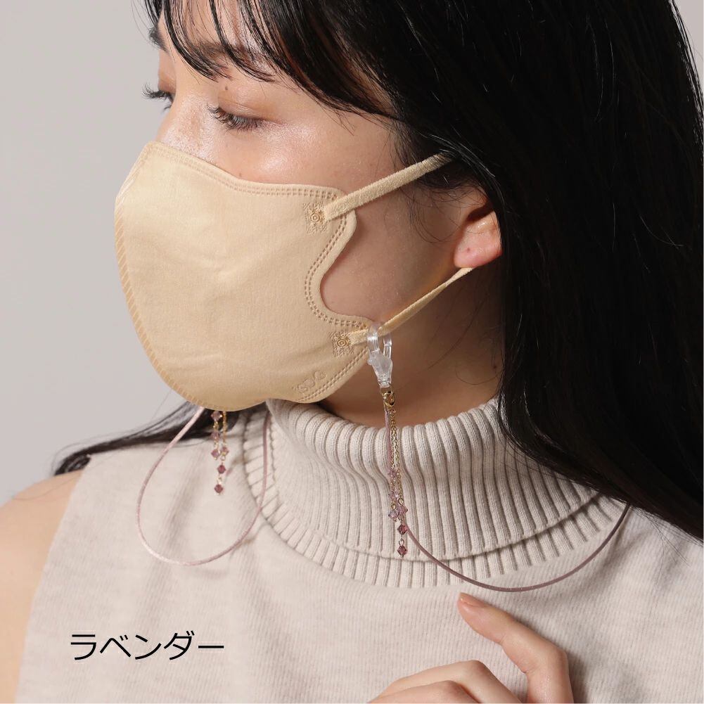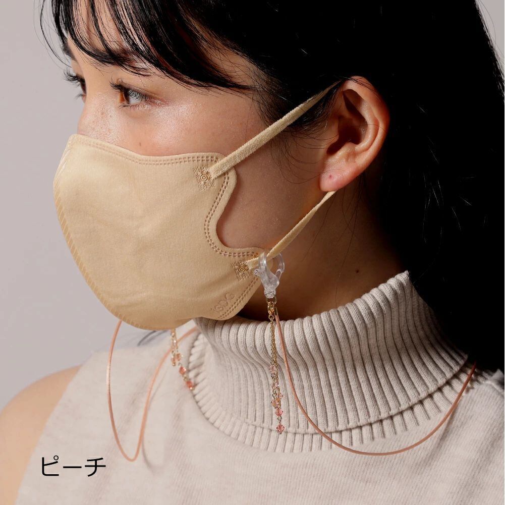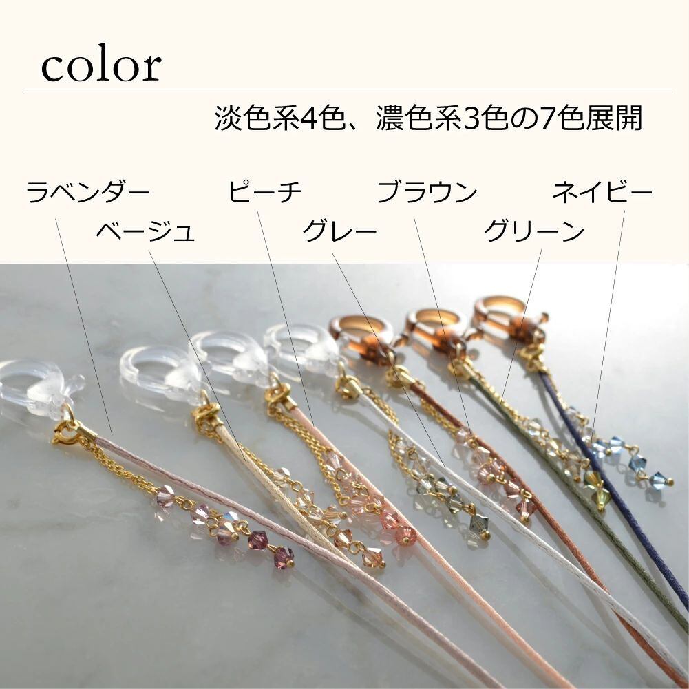 つやのあるフランス製サテンコードを使用したマスクチェーン。キレイめ7色のカラーバリエーション。繊細なグラデーションが美しいビーズチャームは、ピアスのバックキャッチにも。