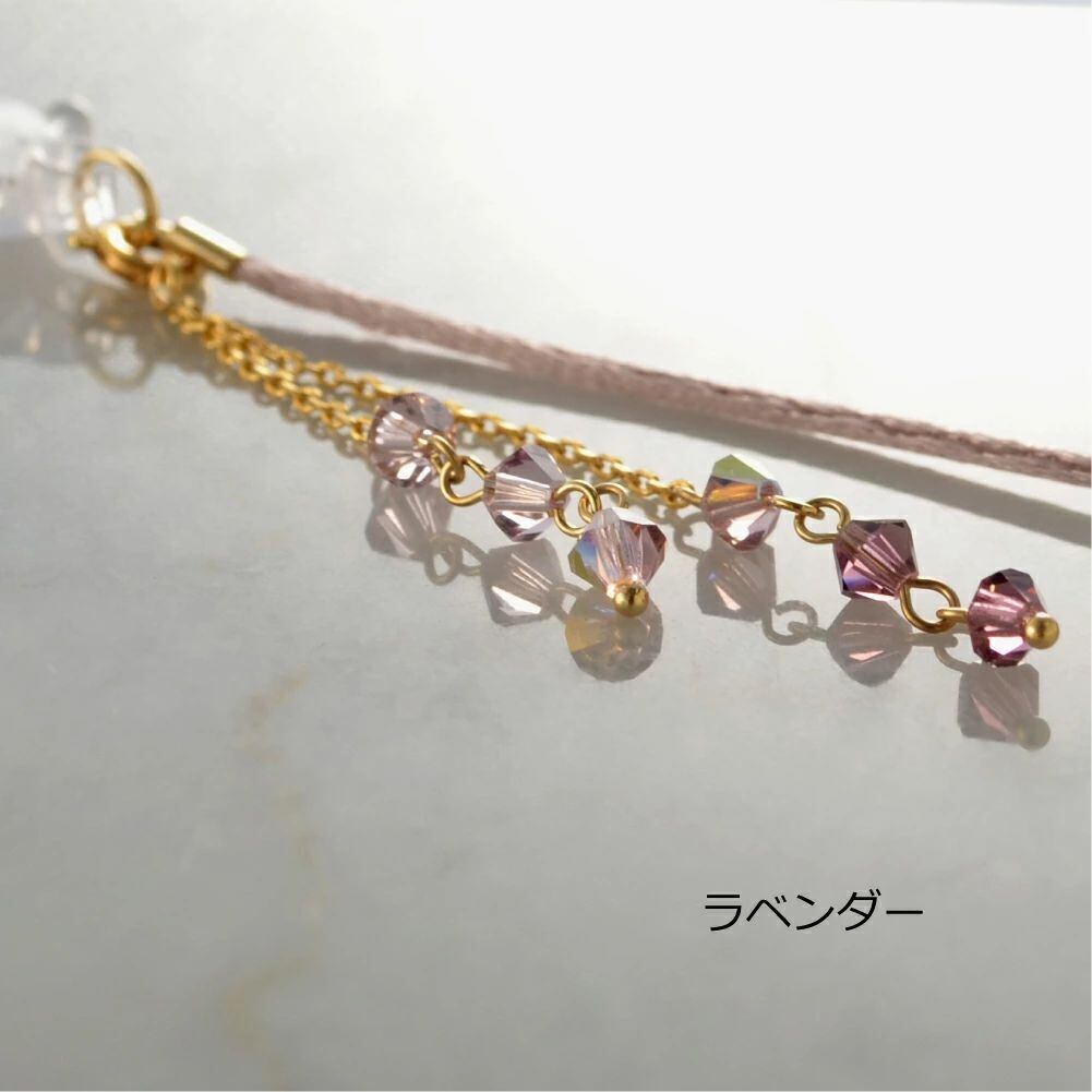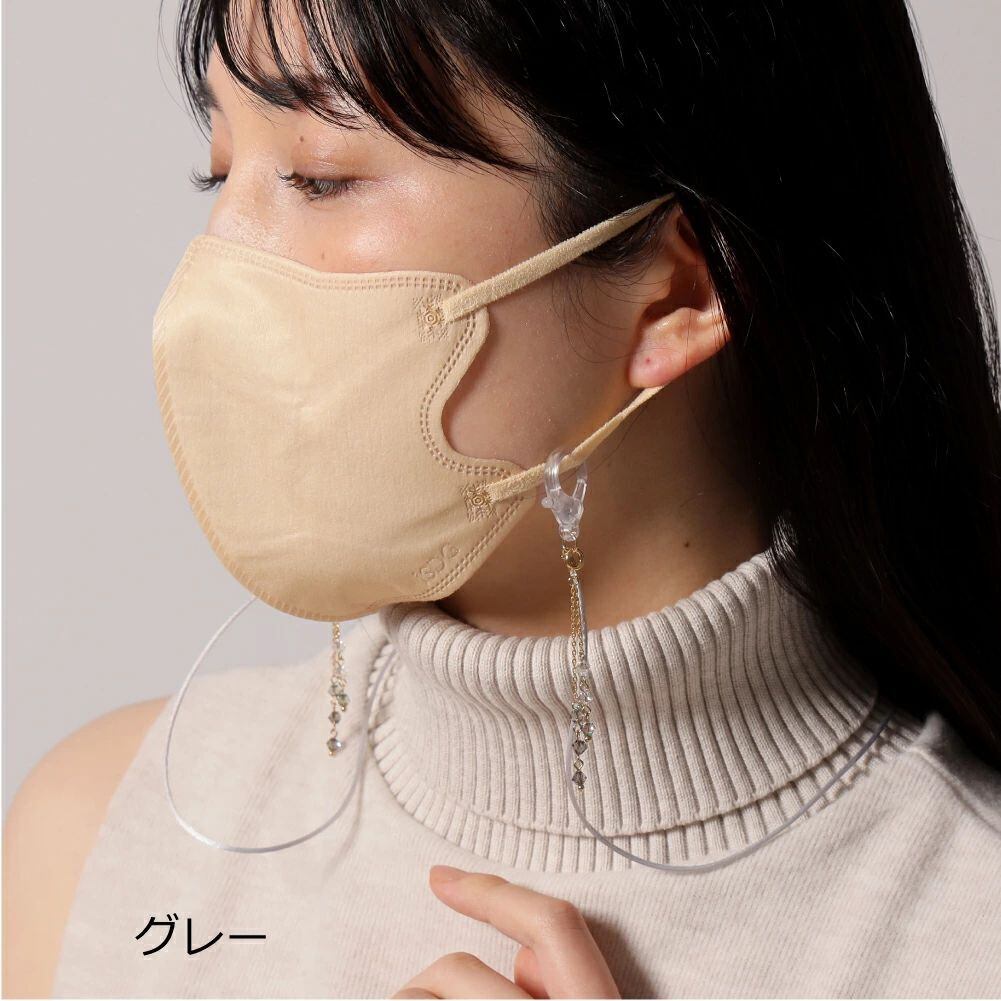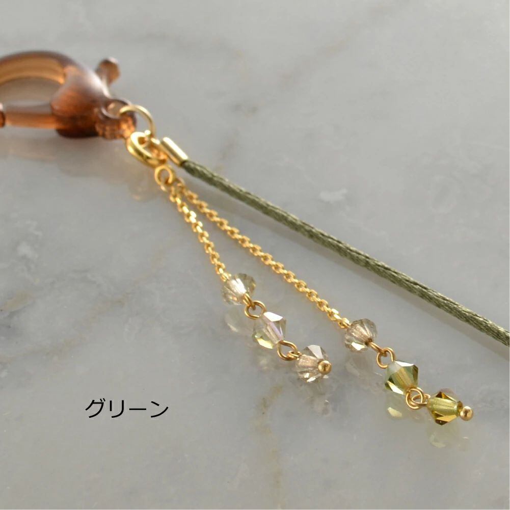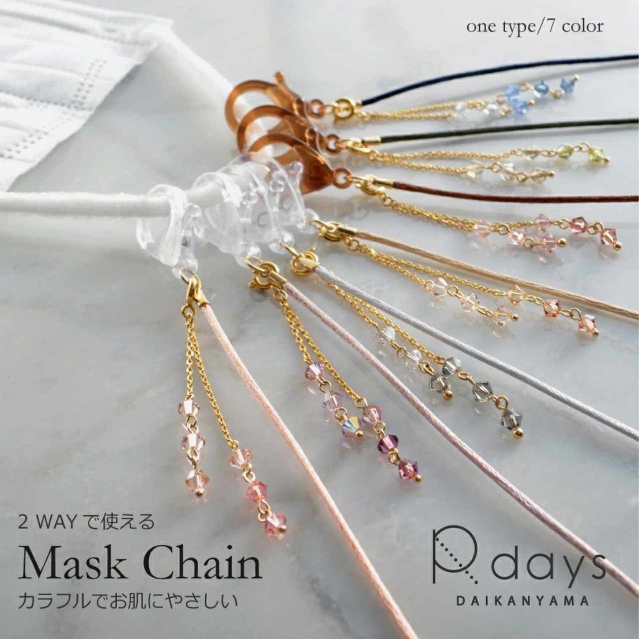 つやのあるフランス製サテンコードを使用したマスクチェーン。キレイめ7色のカラーバリエーション。繊細なグラデーションが美しいビーズチャームは、ピアスのバックキャッチにも。