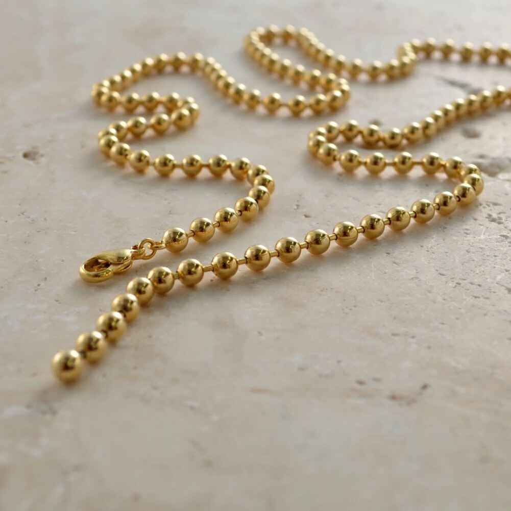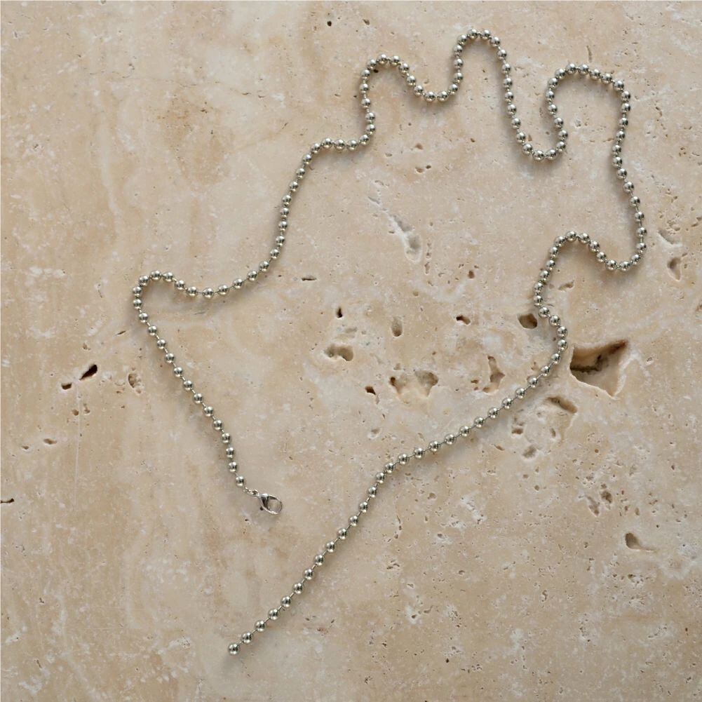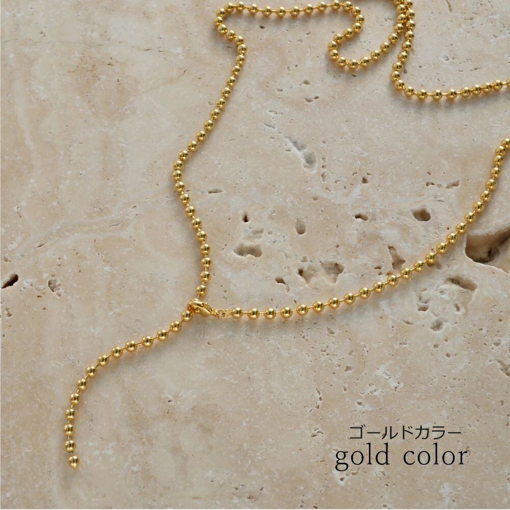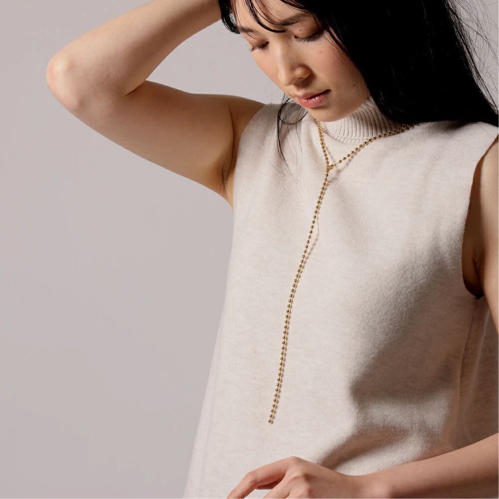 シンプルなボールチェーンのY字ネックレス。お好きなポイントでY字スタイルに。上半身の中心ラインにすっきりとした直線を描くから、コーディネイトをきりっと引き締めます。