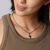 ボールチェーンにハート/クロスの量感あるトップモチーフを配したネックレス。重ね付けにも。低アレルギーで汗や汚れに強く、美しい輝きが続きます。アジャスターで長さ調整可能。