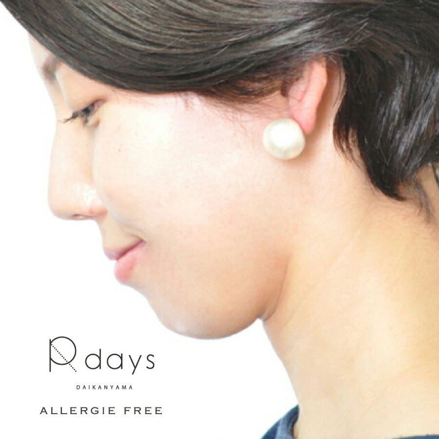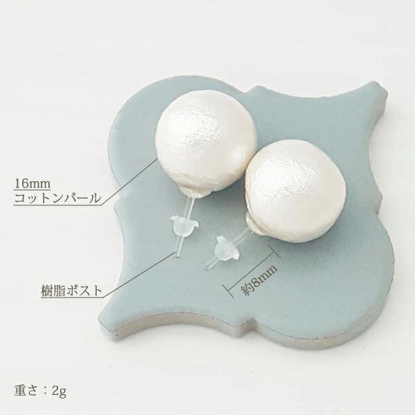 金属アレルギー対応の樹脂ピアス。3色から選べます。16mm大ぶりパールも、コットンパールなら軽くて快適!