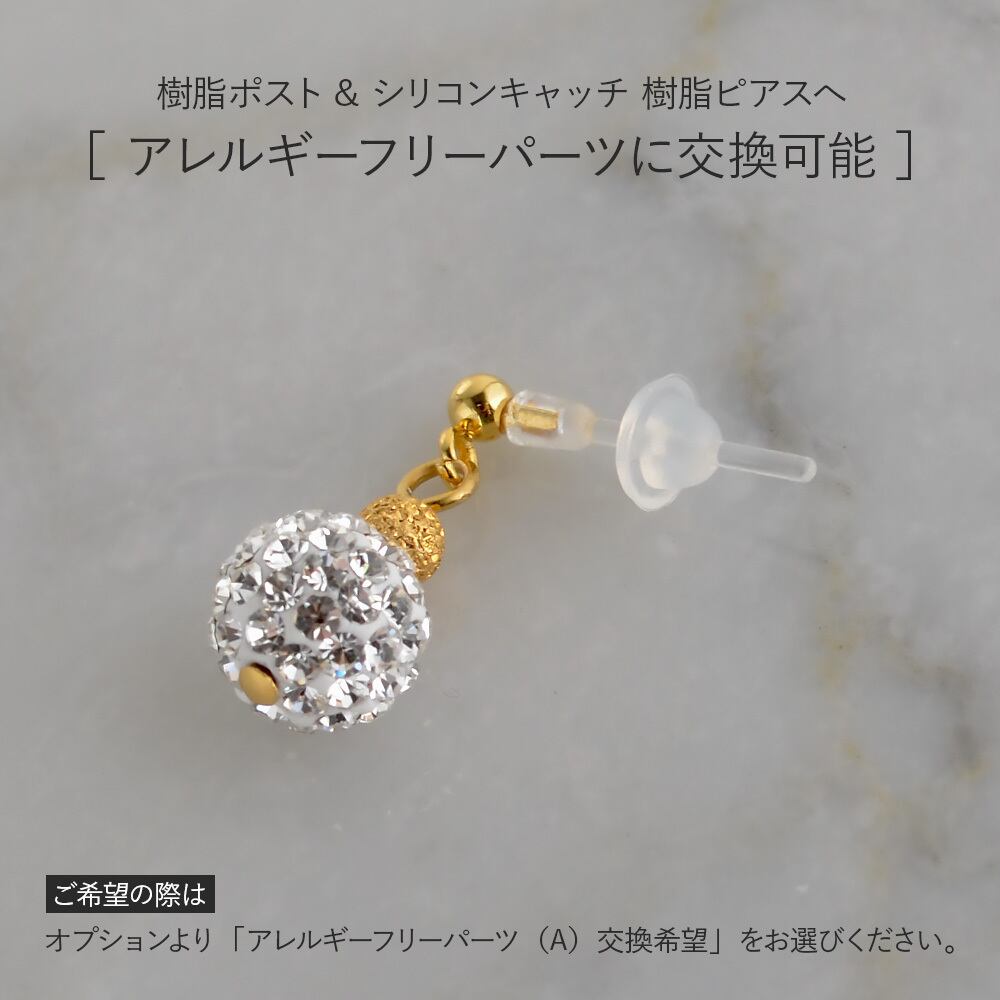 【アレルギーフリーパーツ交換可能】パヴェボール オーナメント ピアス ノンホールピアス/p0600