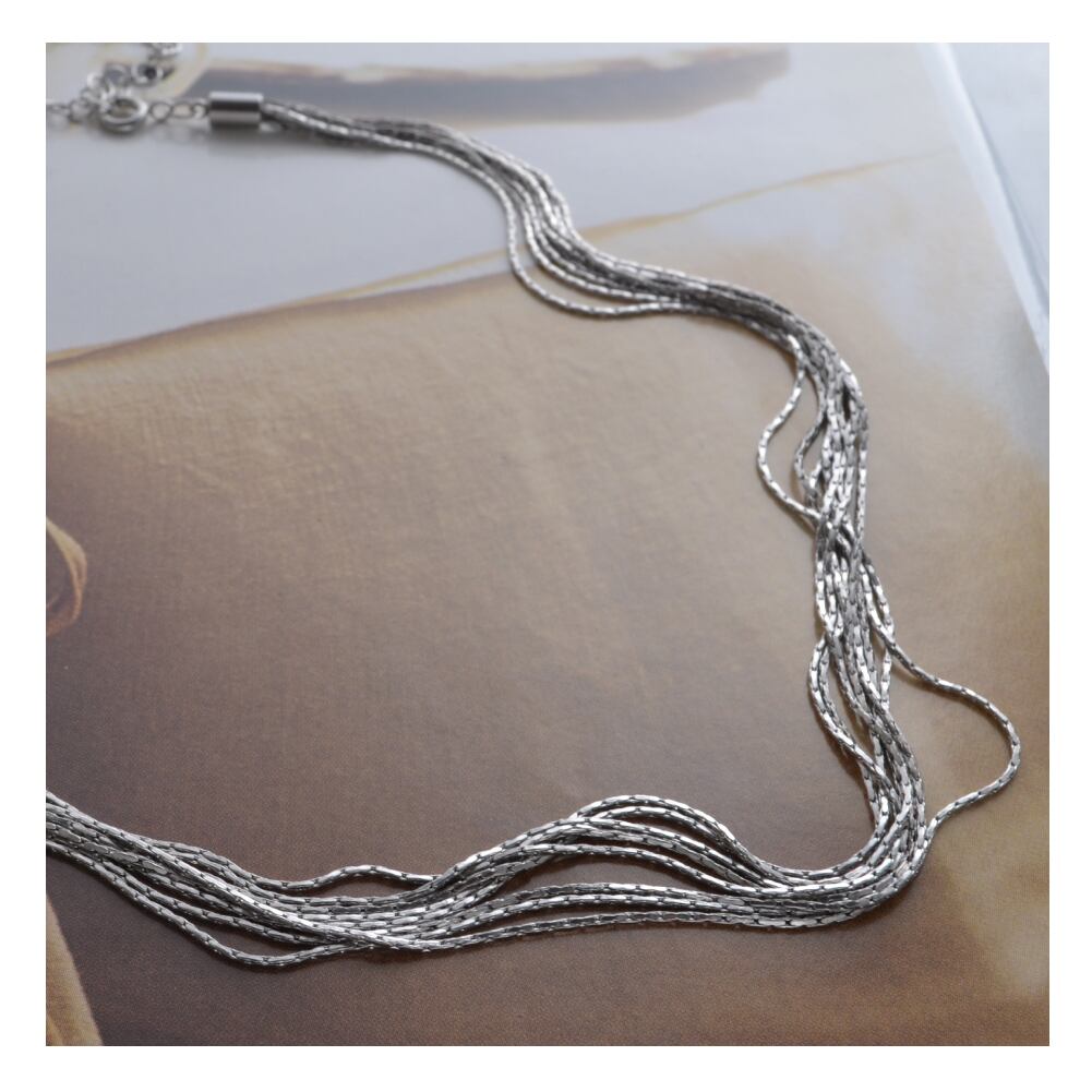 肌に添うしなやかなチェーンが光をまとい、素肌を美しく見せたい季節に頼れるネックレス。