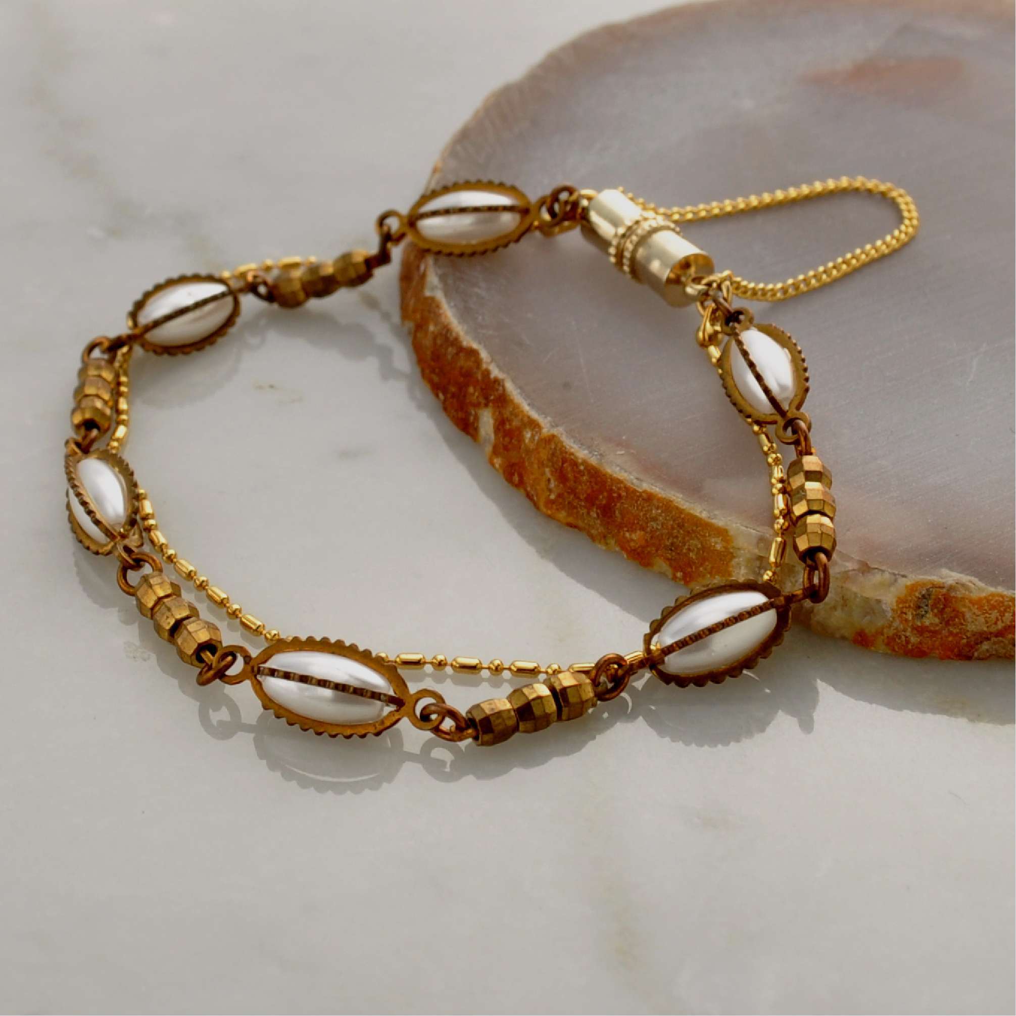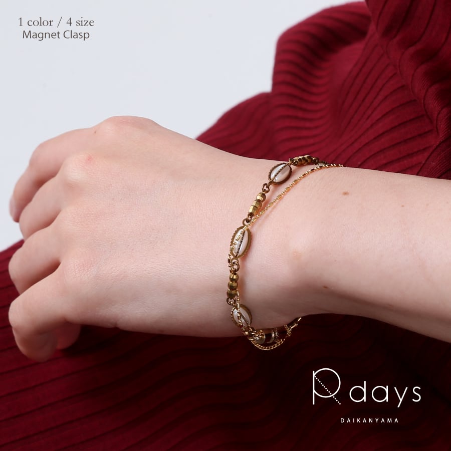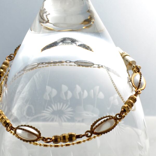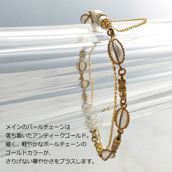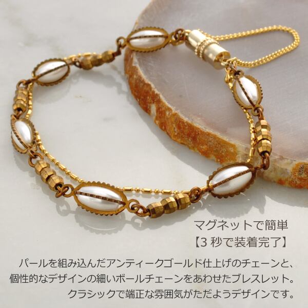 アンティークゴールドパールチェーンブレスレット /b0487【3秒装着/マグネットクラスプ】