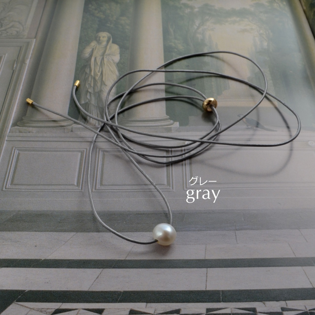 ・淡水パール、牛革紐、真鍮にゴールドカラーメッキ、シリコン