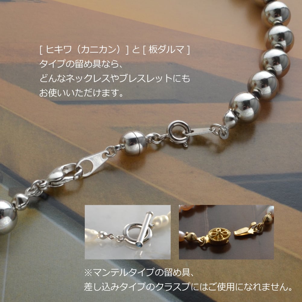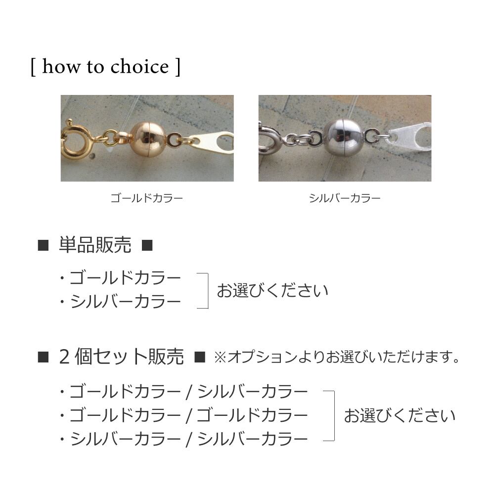 強力ネオジム磁石のネックレス留め具。手持ちのネックレスにつけ、自然にマグネットが引き合うから簡単装着。留め具操作がしにくくても、見えなくても、腕が上げにくくても大丈夫。
