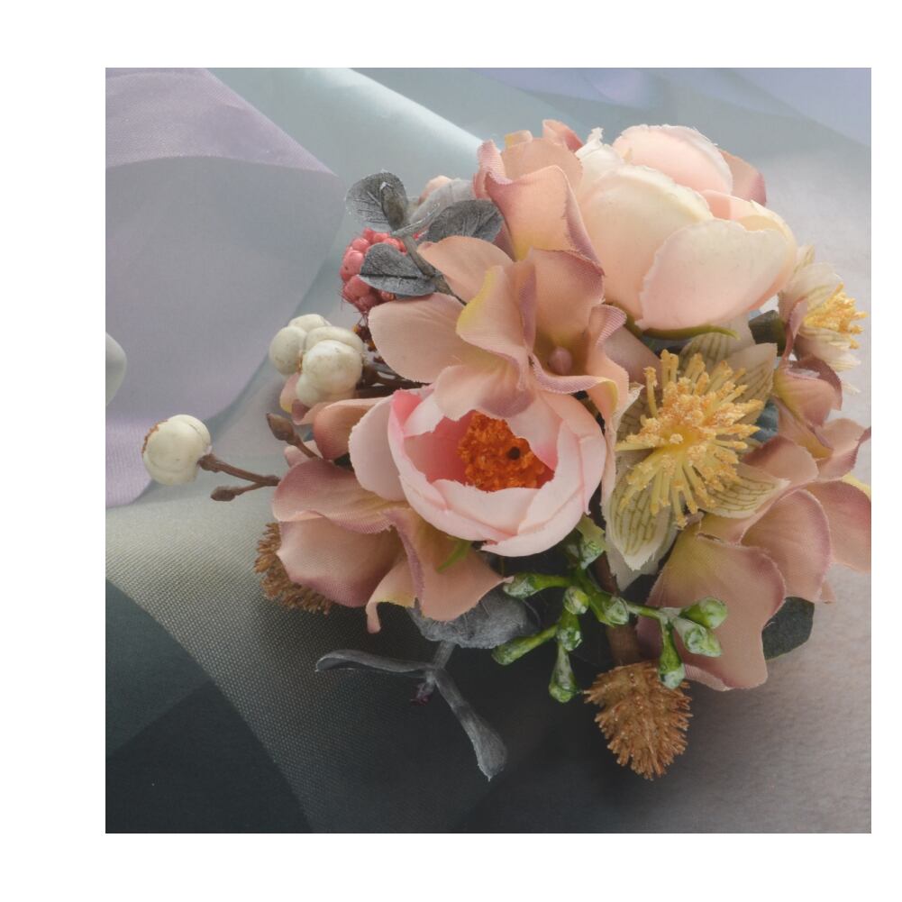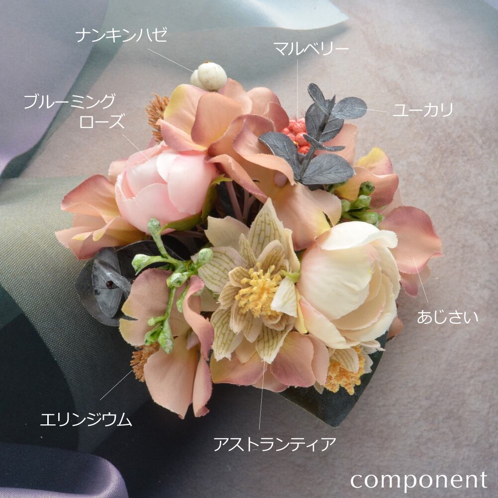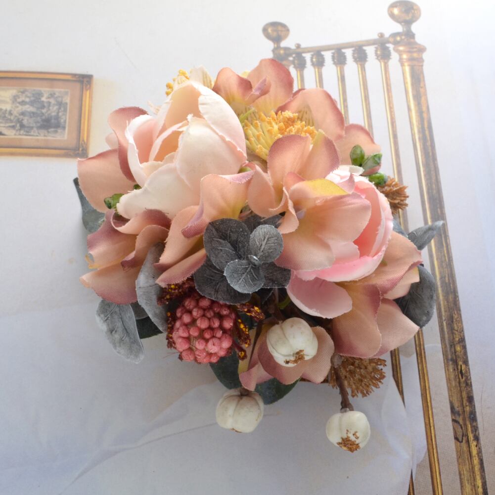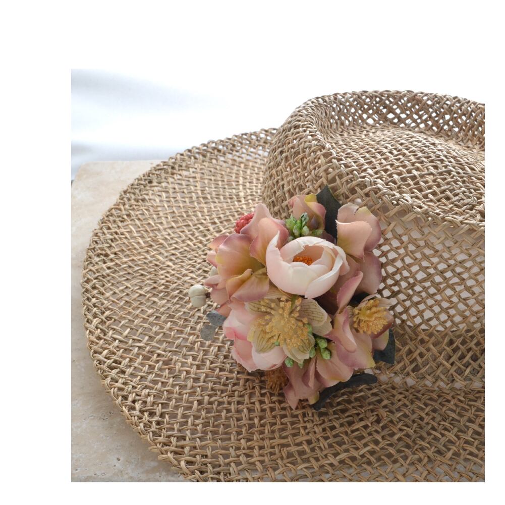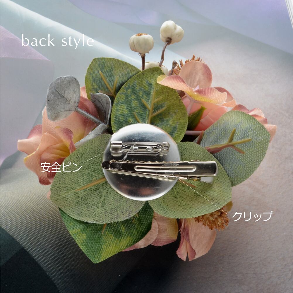 ブーケコサージュ マスタードピンク / c0839 R-days代官山 入学式 卒業式 コサージュ ブローチ ピンク イエロー 黄色 花束 ローズ あじさい ナチュラル 結婚式 発表会 花束 生花みたい フォーマル ダブルピン クリップ 日本製 レディース