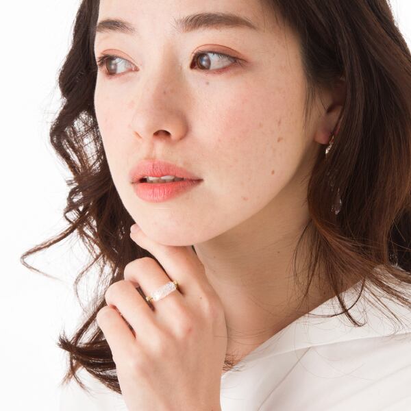 Dシェイプのシンプルな形状なのに、モードな雰囲気が目を引くリング。